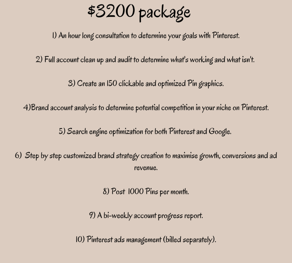 For Brands and Businesses who already have a Pinterest presence and are in need of a Pinterest specialist to give it a boost and increase conversions.