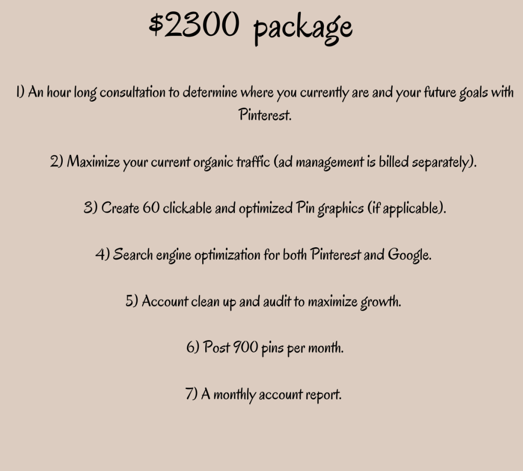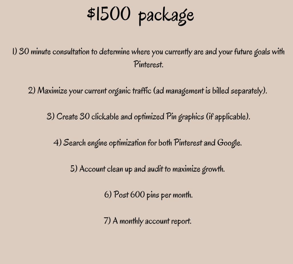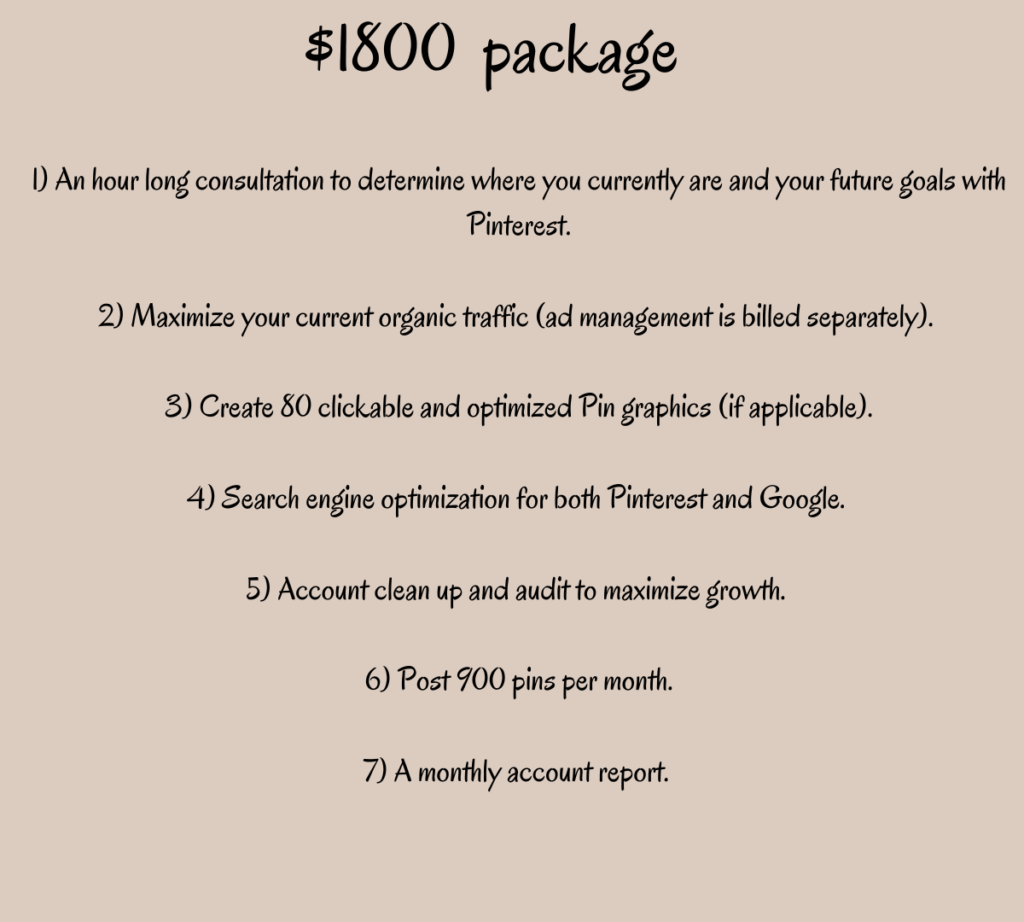A premium package for established e-commerce brands in need of a Pinterest specialist who’ll maximize growth and conversions from organic traffic and ad budgets.